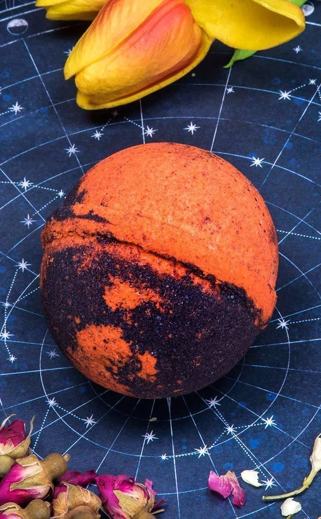Ingredients: Sodium bicarbonate, Citric acid, Cream of tartar, Coconut Milk Powder, Sweet almond oil, Water Soluble Dye CI 28440, CI 16255, CI 19140, CI 16035 Aromatic fragrance oil, Mica powder, black mica, red (skin safe), polysorbate 80, bio glitter, Isopropyl Alcohol, Water.. Approx 180 grams. Vegan & Cruelty-free.