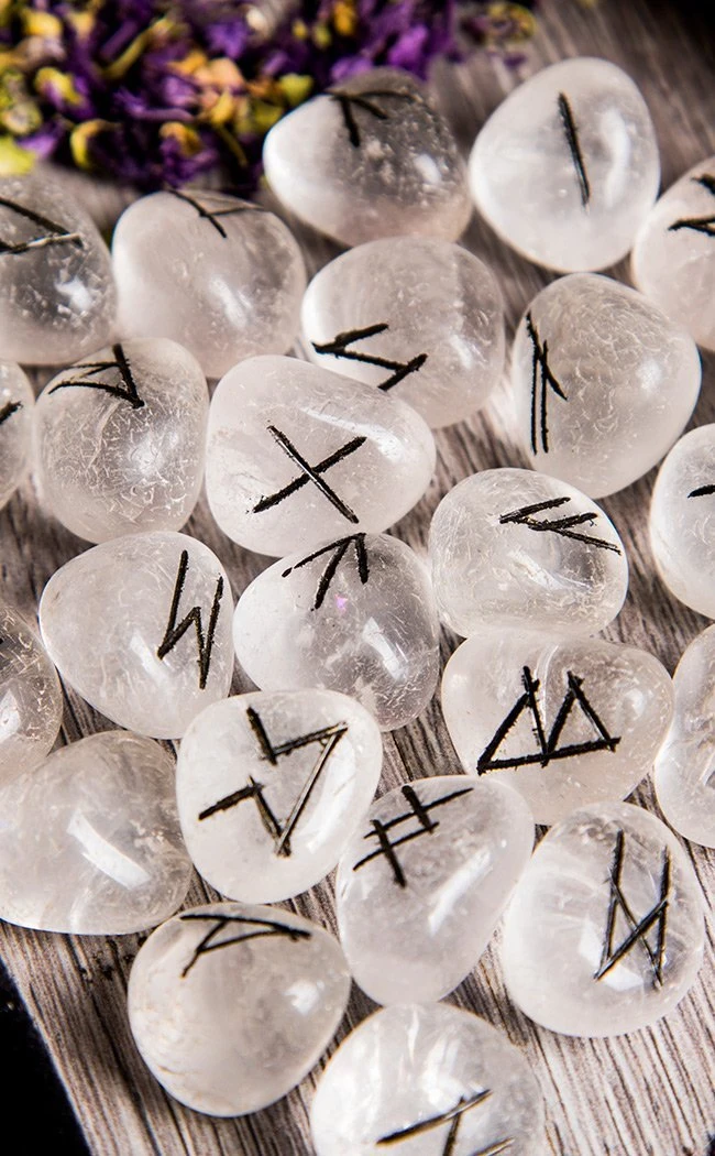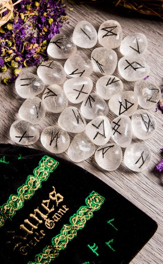This authentic Quartz Rune Stone Set is perfect for finding answers. The engraving on these stones are the ancient elder Futhark runes, which are the eldest known runic alphabet. This makes this set perfect for Wiccans and Pagans as each stone has magickal properties. Each set consists of 25 genuine Clear Quartz stones, each inscribed with a character from the Elder Futhark rune alphabet with one blank stone.Â
