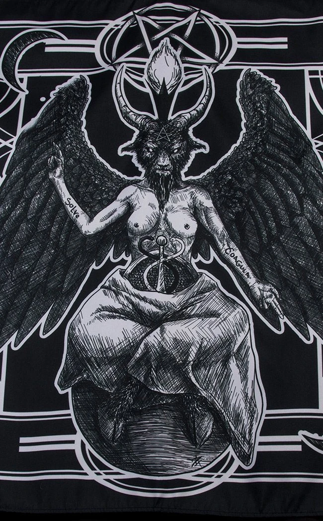 This design features one of the most controversial and interesting occult symbols, the baphomet.Â