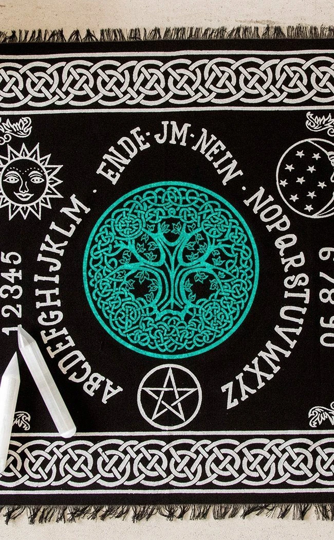 Gorgeous lightweight altar cloth with colourful Celtic inspired spirit print. Use on your altar, table, on a chest of drawers or even as a wall hanging.Â