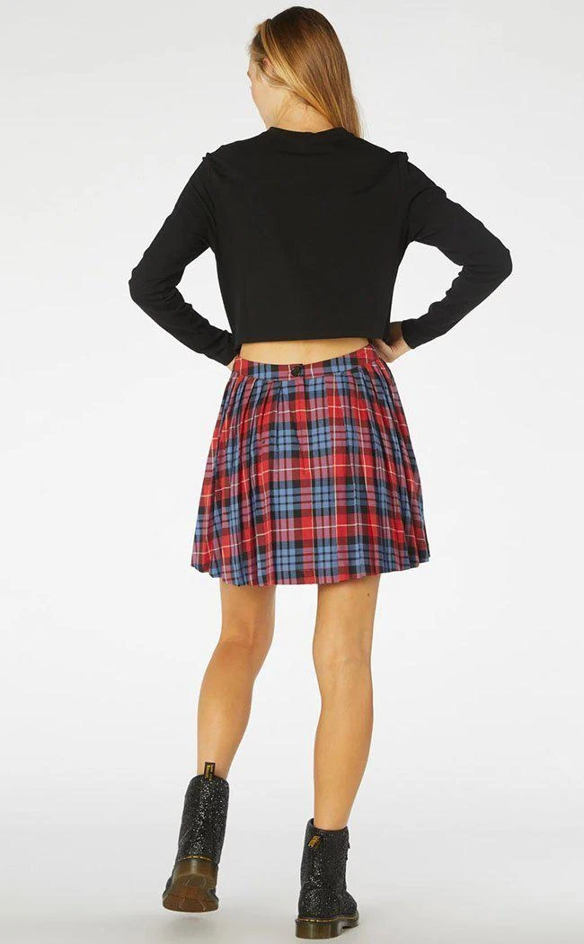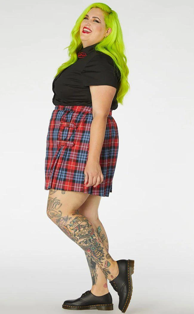 Put a little voodoo on those legs! Burgundy and blue cross together in a gorgeous tartan pattern on this skirt, coming with belt hoops so you can accessorise to the max!
