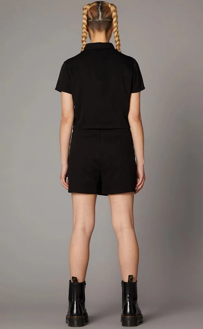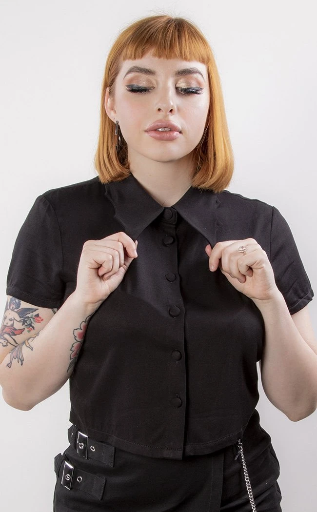This blouse is super versatile: made of a soft, flowing viscose this baby features a button-up front and short sleeves. The collar is shaped like bat wings as a quirky twist that can easily be dressed up or down!