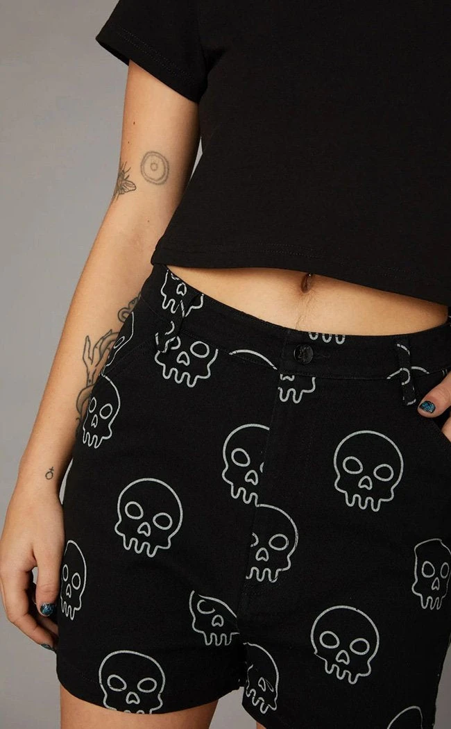 Expose yer bones this summer to beat the heat! These high waisted shorts feature an all-over skull print, pockets that actually have space to hold things (!!!) and belt loops so you can accessorise to rock the (g)raveyard.