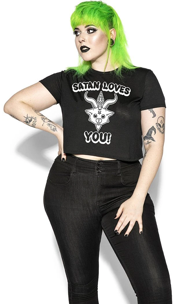 Sweet lil Luci will always be there for you! His big ol’ goat eyes look out sweetly from this crop, declaring his infernal and every burning love in round, cutesy lettering.