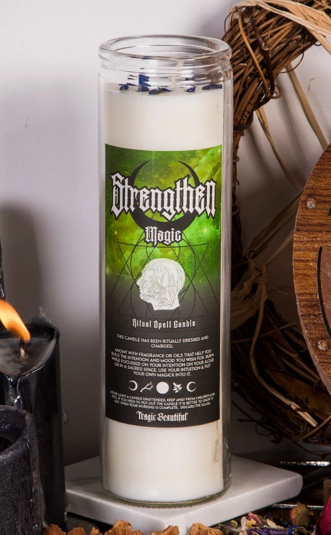 An all-purpose, positively charged candle to use in conjunction with your own spells, to add strength to your existing work, or to burn as a blessing or protection.Â