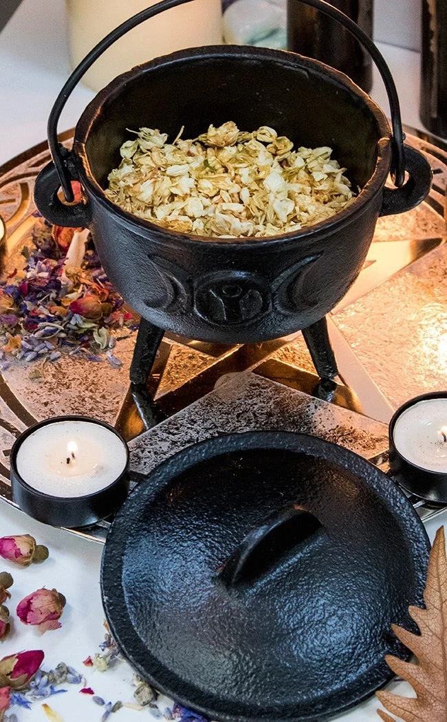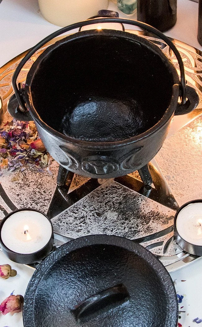 This cauldron was designed to hold incense, liquids, resins, herbs and all other manners of ritual magick! Cast iron is heavy and solid, it is a heat resistant making it perfect for resin burning and rituals.Â