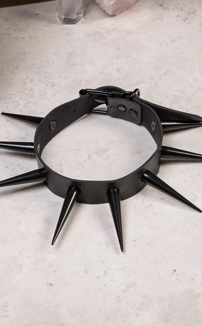 Cold Black Heart EXTRA Malevolence Spiked Choker in Black Vegan Leather.