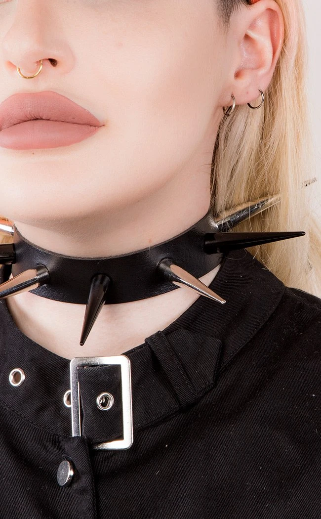 This Cold Black Heart favourite is back with a monochrome makeover! Super long spikes in black and silver extend from a vegan leather band, setting a new standard in the choker game.