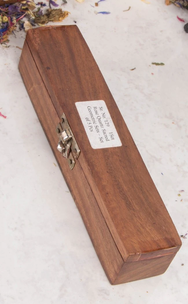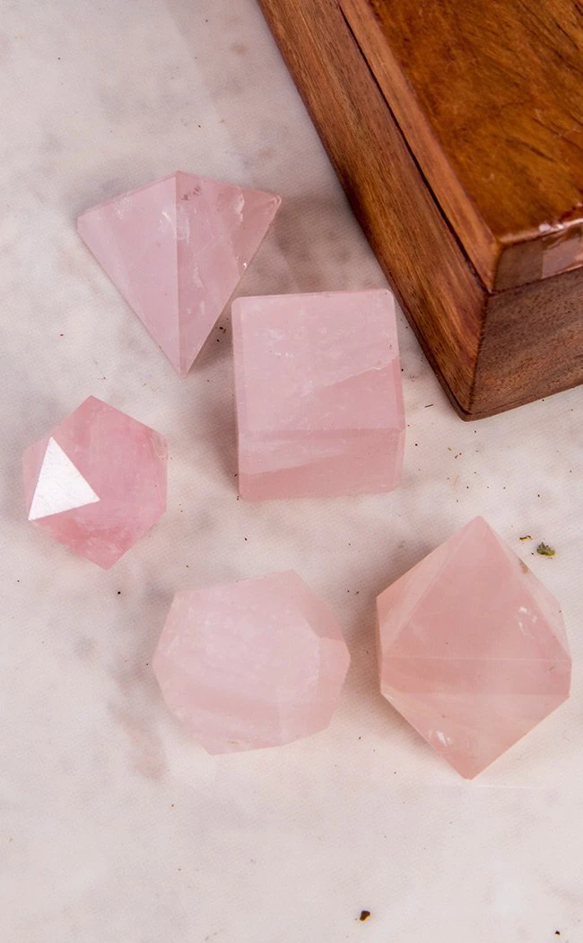 Each set comes with a box and 5 genuine rose quartz crystals.