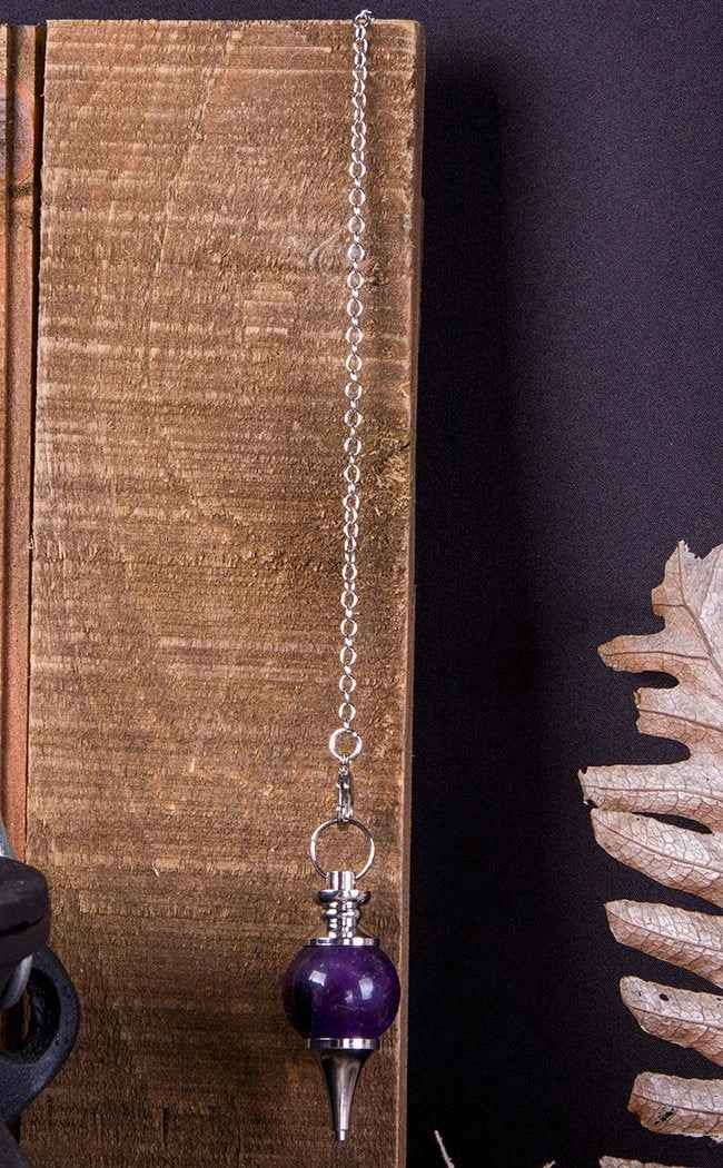 Pendulum is amethyst on a gorgeous silver chain.Â