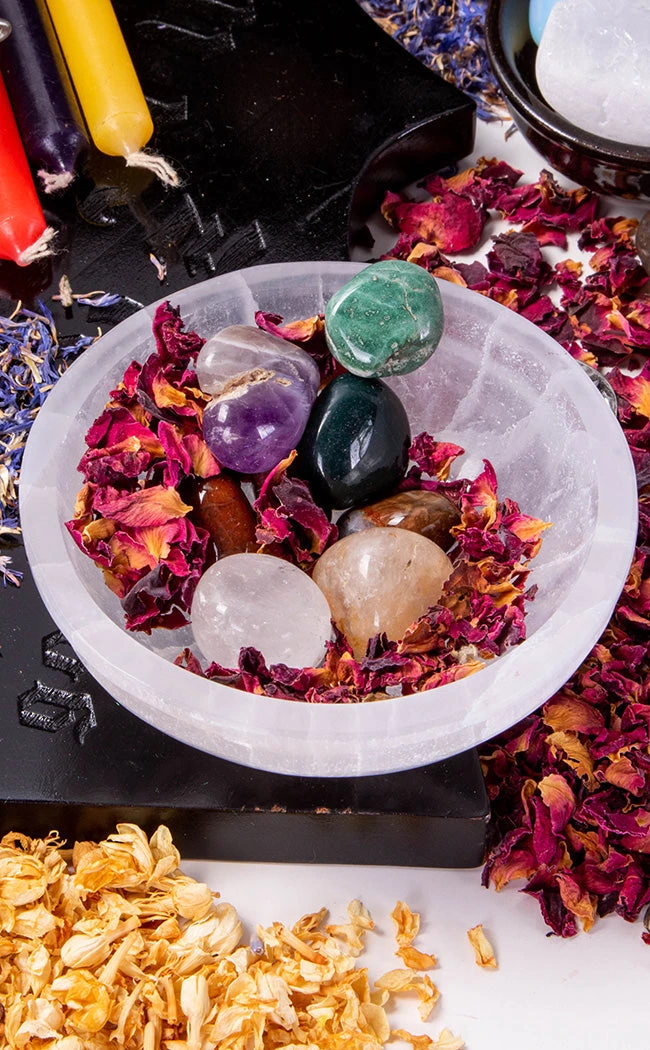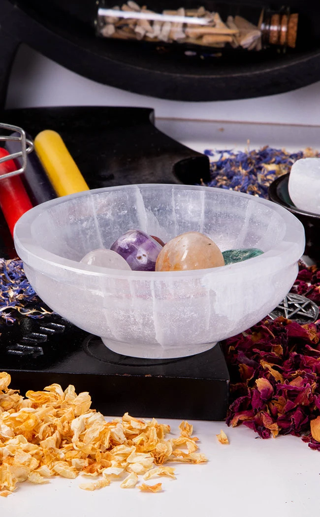 To cleanse or reactivate your jewelry and crystals, lay them in your Selenite Cleansing Bowl for at least 6 hours. One of the selenite healing properties is that it magnifies and amplifies the energy of anything that is placed upon it, making it ideal for activating your crystals and jewelry.
