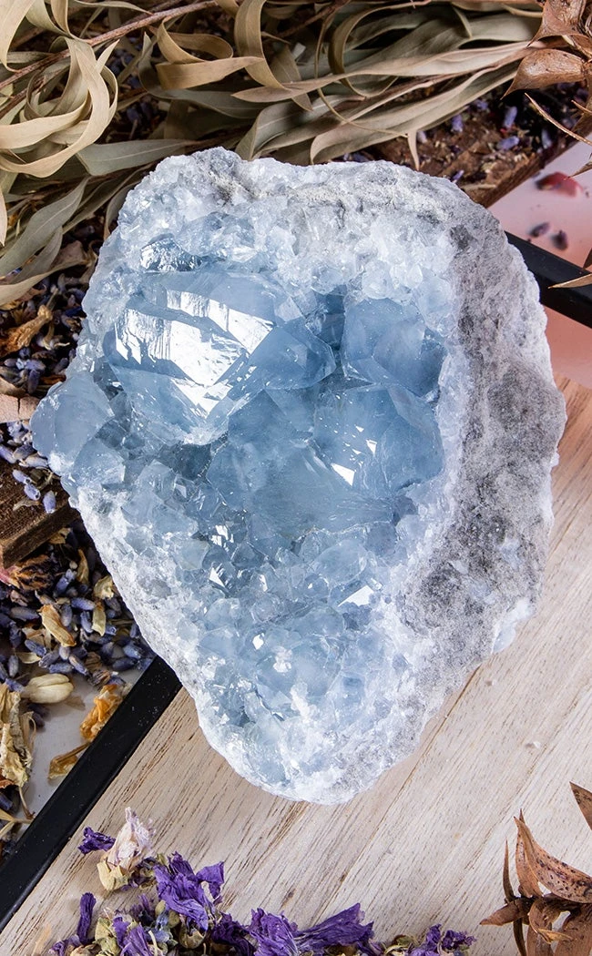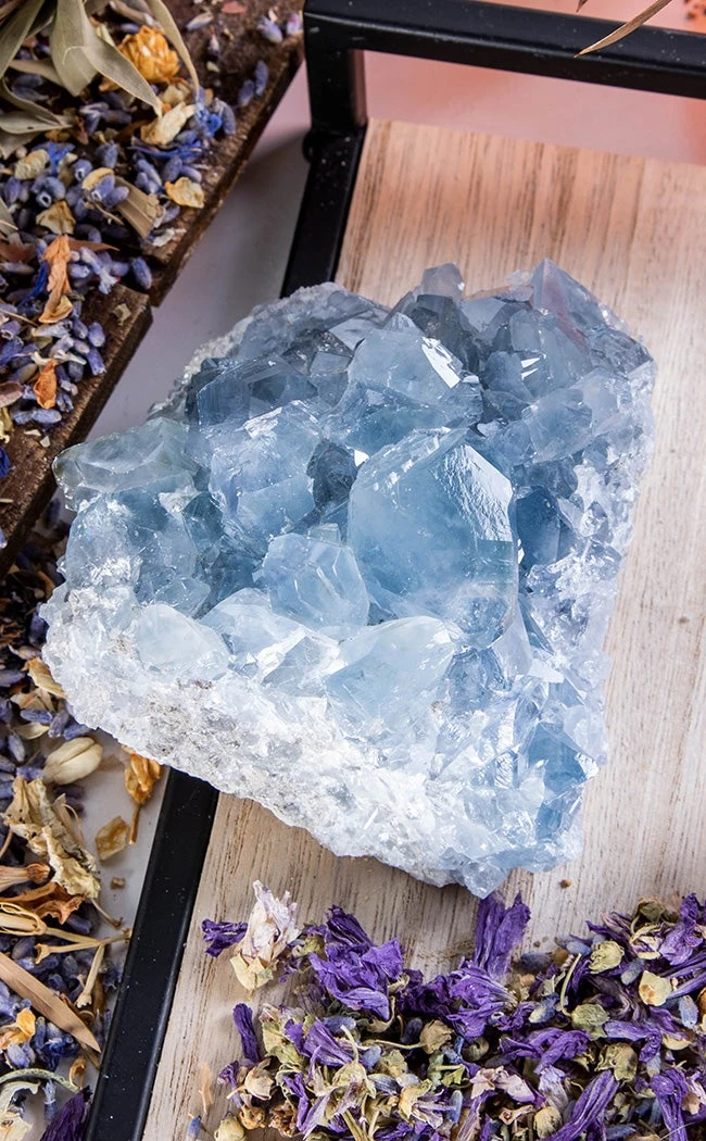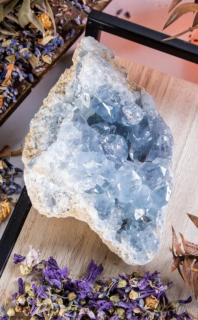 You will receive a single celestine cluster. Because each cluster is unique, there will be differences in shape and colour in each individual item due to naturally occurring variances. Choose from different sizes including up to 665, 775 and 1165g.