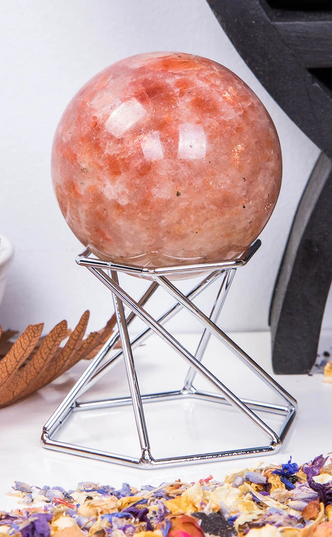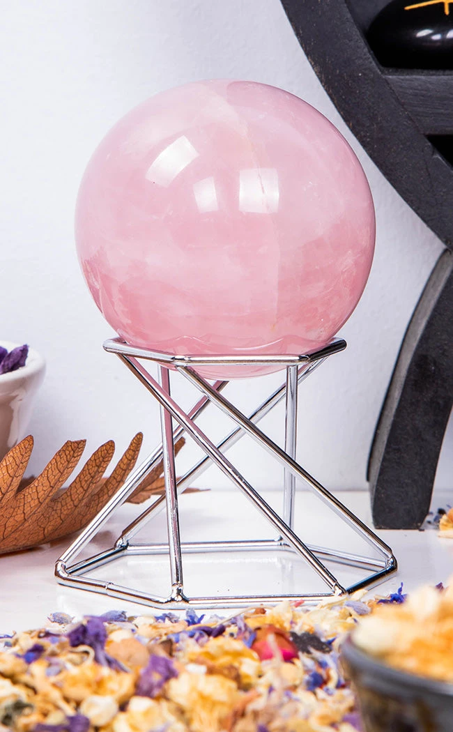 This lightweight yet sturdy metal stand is the perfect display piece for crystal balls, spheres, and eggs. It can be flipped to hold both small and medium spheres up to 8cm across.