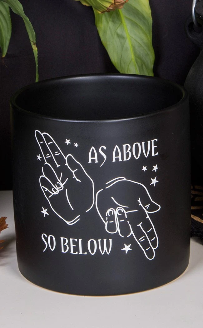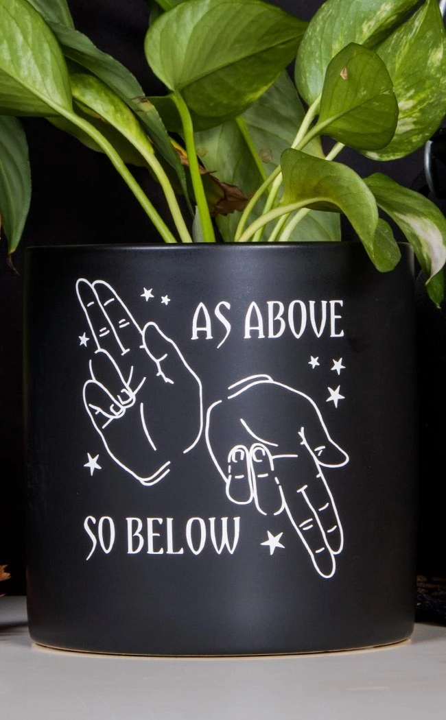 Beautiful black matte planters made of ceramic material, decorated with glossy white design “As Above, So Below”. The perfect witchy gift!Â