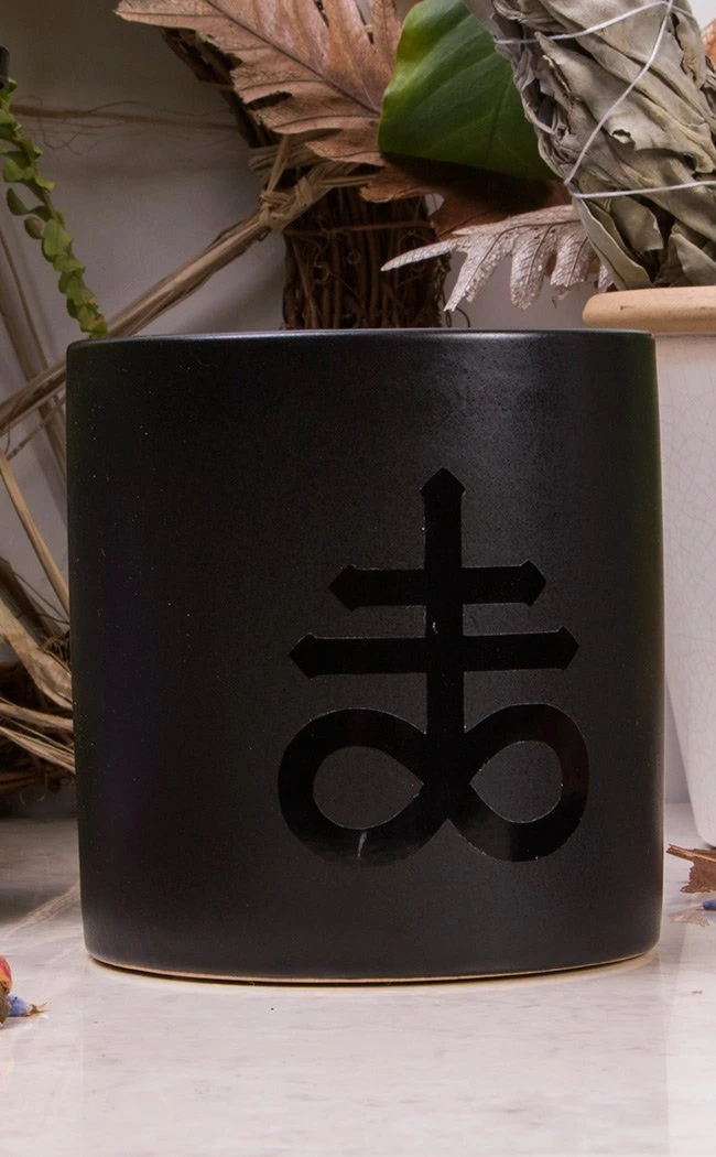 Beautiful black matte planters made of ceramic material, decorated with a glossy black Leviathan Cross. Comes in three different colour options.