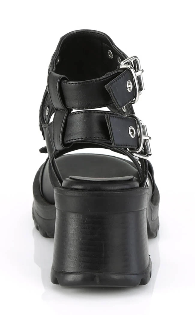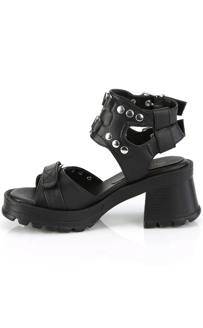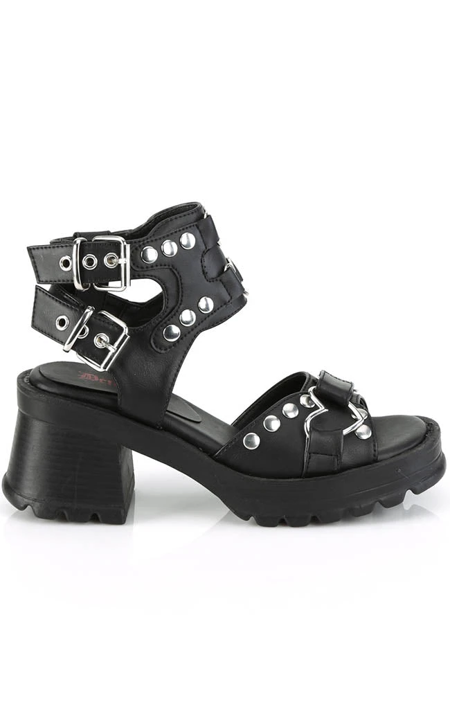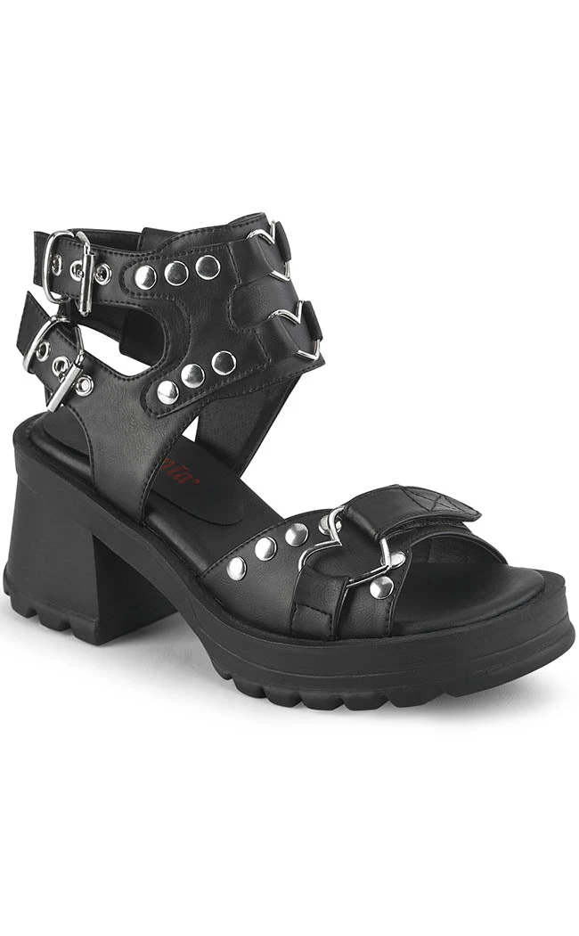 Get yerself in a bratty mood! The BRATTY-07sandals feature a chunky heel and 2 ankle straps decked out with heart rings and studs. Perfect for everyday summergoth looks!