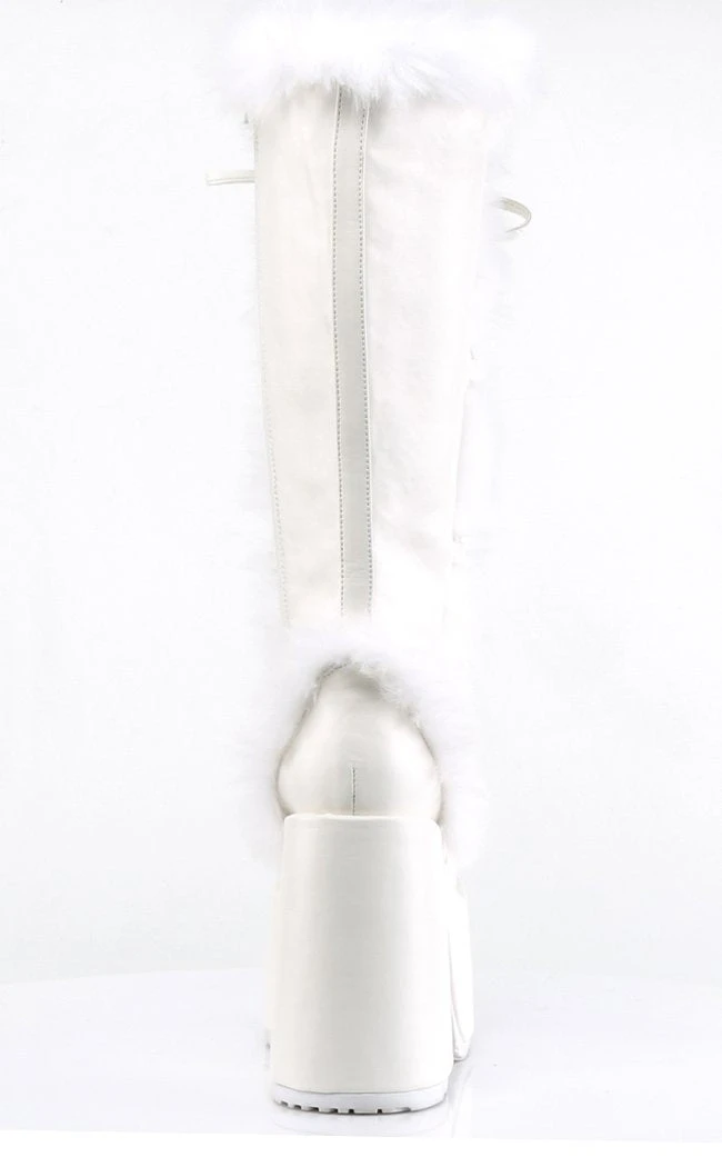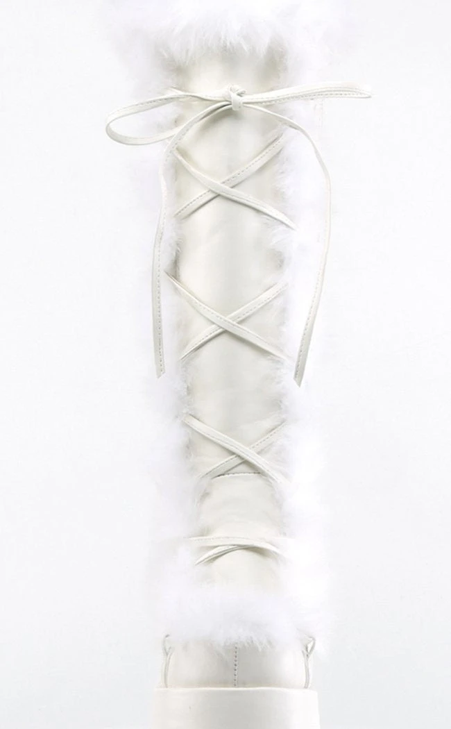 - White faux fur/suede