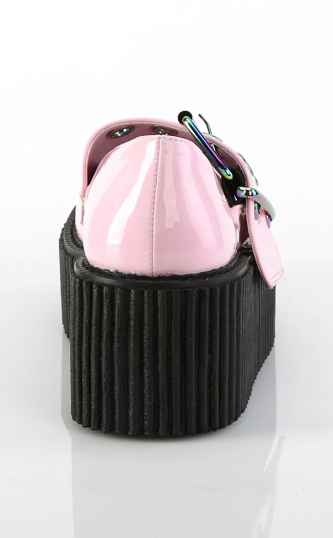 The CREEPER-230 flatforms are an edgy alternative to yer traditional Mary Janes with a wide eyelet strap and the trademark creeper sole for all-day comfy wear.