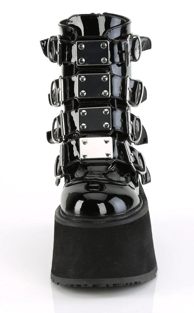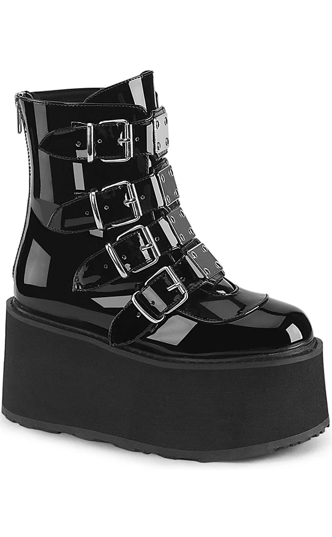 Demonia DAMNED-105 Black Patent Flatform Ankle Boots Shoes