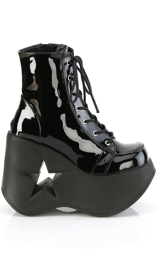 Baby, you’re a star!  The DYNAMITE-106 boots are lace-up ankle boots with a chunky platform wedge that secures with an inner zip. A super-versatile pair to style that adds an instant va-va-voom to any outfit.