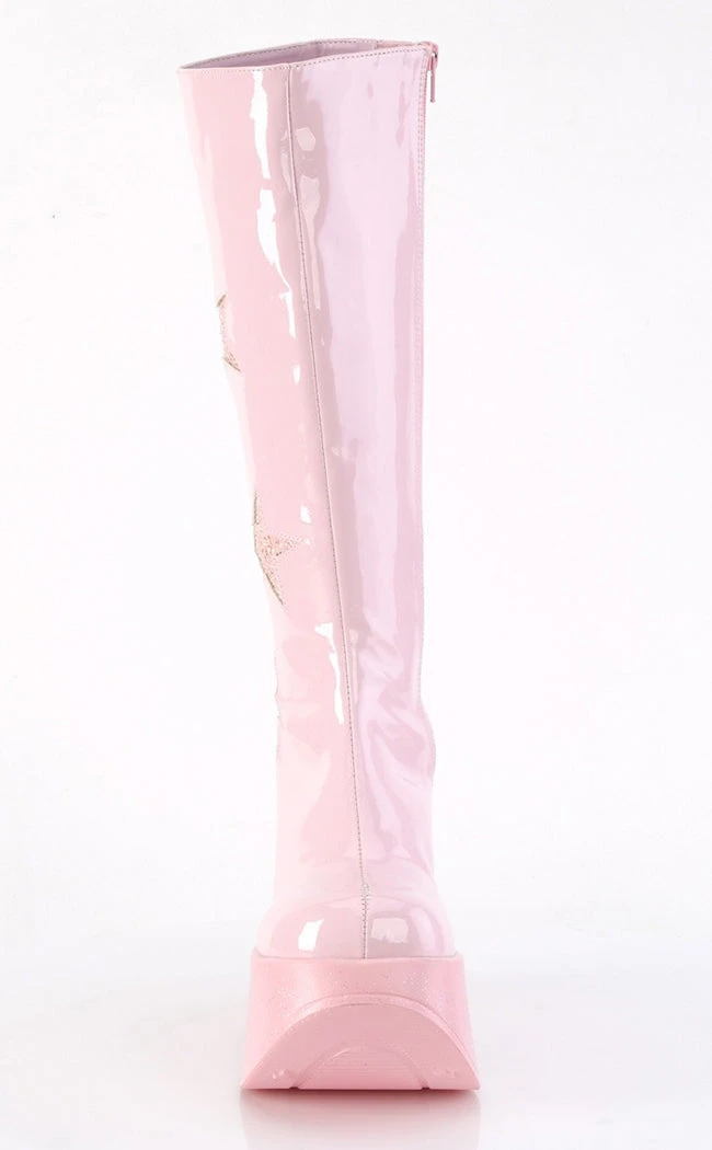 Demonia DYNAMITE-218 Baby Pink Patent/Glitter Knee Boots