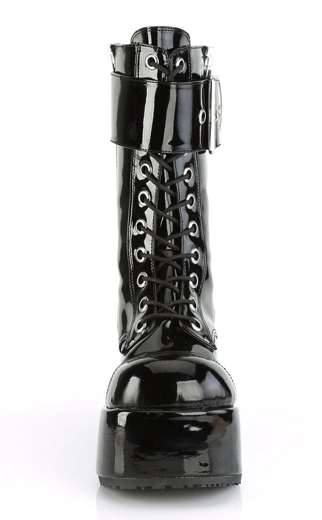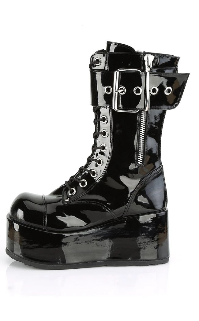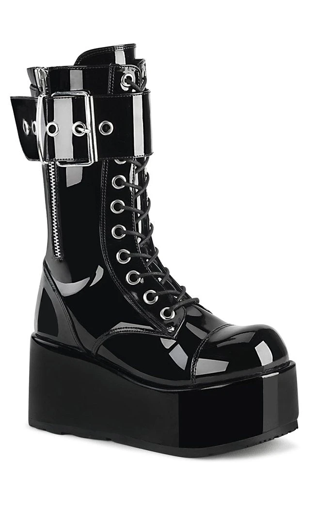 Badass black boots with oversized buckle strap and old-school punk attitude.