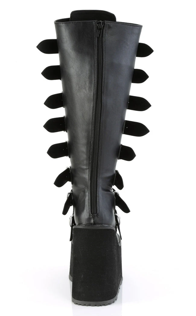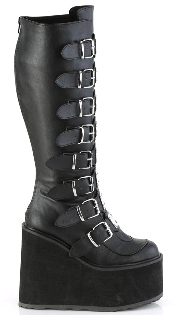 Swing your way into the club with this series of platform wedged boots and shoes, with buckles and straps and decals galore!