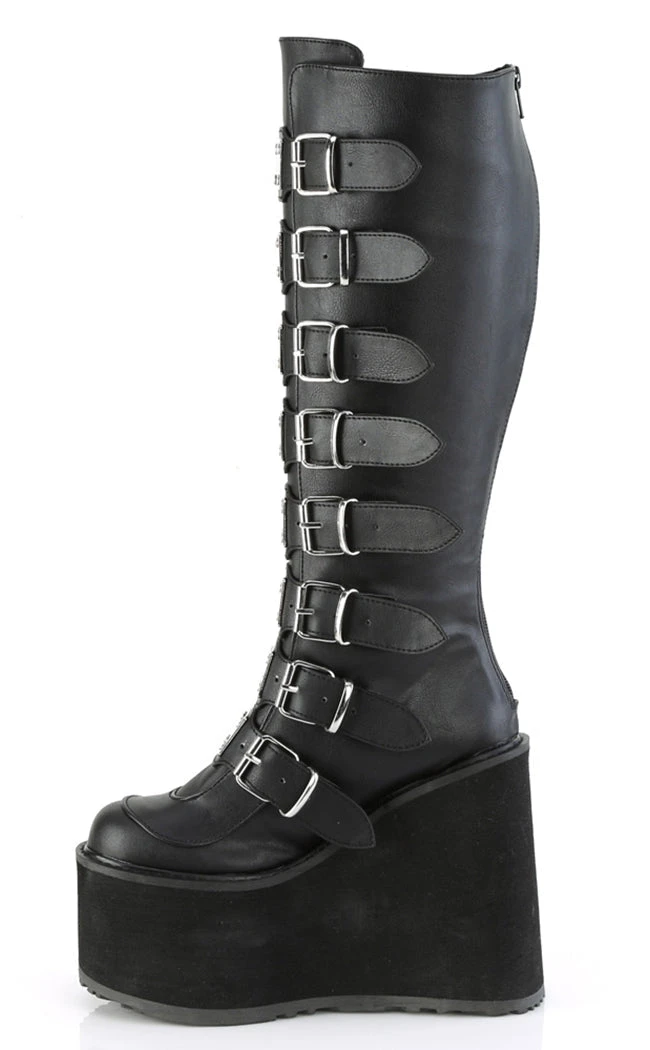 Swing your way into the club with this series of platform wedged boots and shoes, with buckles and straps and decals galore!