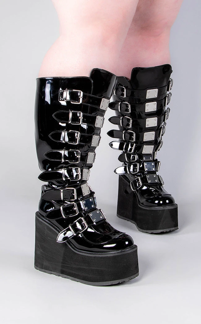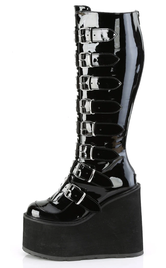 Swing your way into the club with this series of platform wedged boots and shoes, with buckles and straps and decals galore!