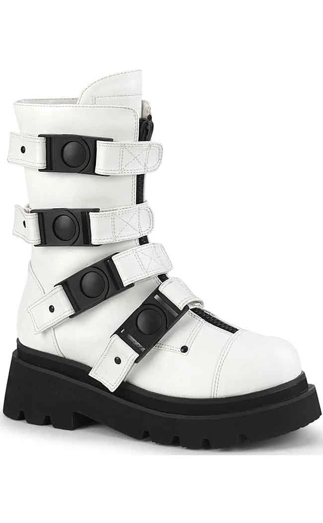 For the rebels and the renegades, these strappy combat boots are where it’s at! With D rings and futuristic buckles kit up for club looks and Y2K cyber vibes.