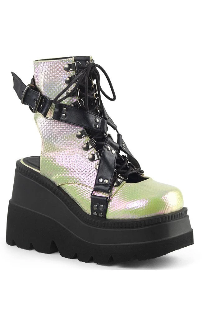 Shake it, baby! These tiered wedges are a cute variation on Demonia’s other wedge collections.