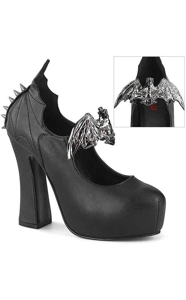Demon Hunter ready! Let these demons entice you into a world of vampires and shrieking creatures on the night. A hidden platform gives you subtle height and elegance while the batty decals top off this Trad Goth marvel.