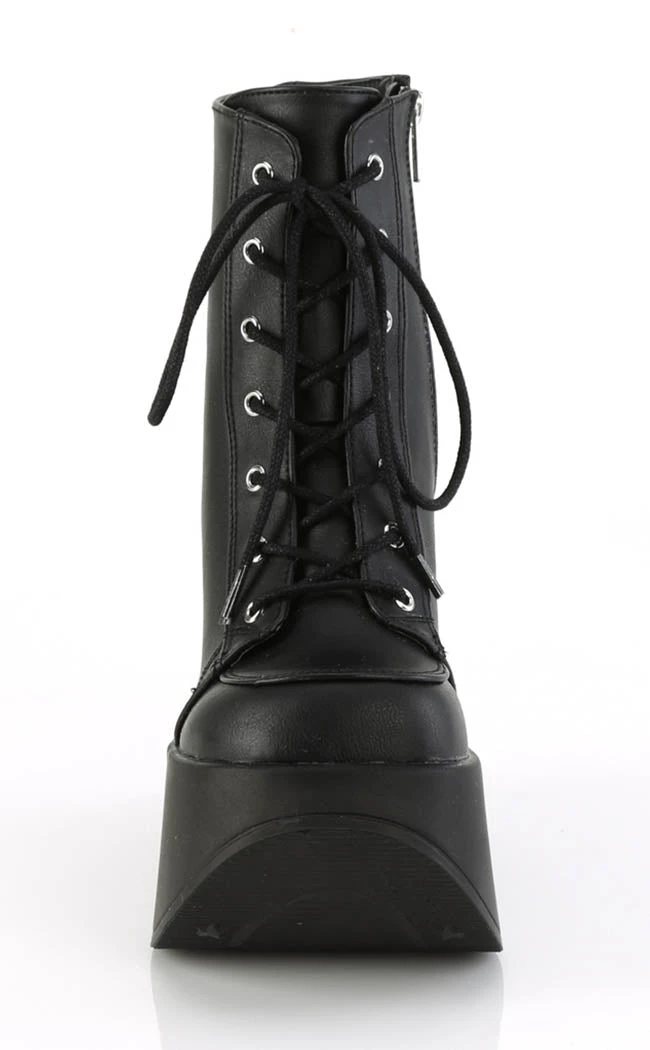 Baby, you’re a star!  The DYNAMITE-106 boots are lace-up ankle boots with a chunky platform wedge that secures with an inner zip. A super-versatile pair to style that adds an instant va-va-voom to any outfit.
