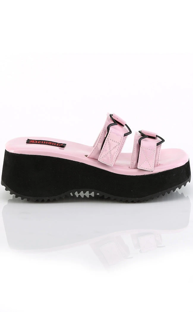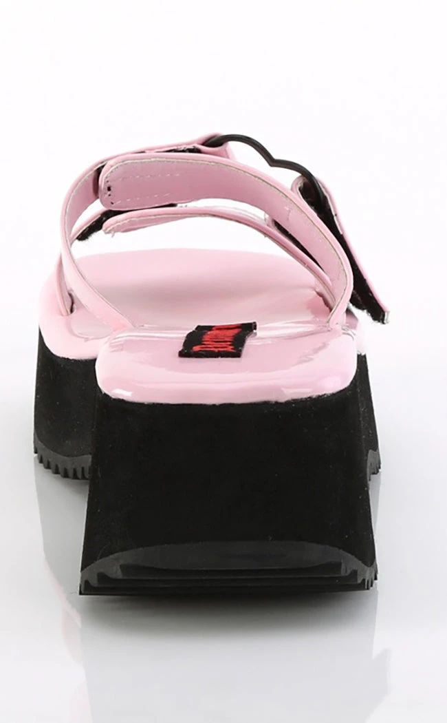 The FLIP-12 sandals are a casual dose of Spooky™ to keep ya cool ‘n cosy in summer?  These slides feature a modest platform with two adjustable over-foot velcro straps that feature a heart charm as the hook and eye closure.Â