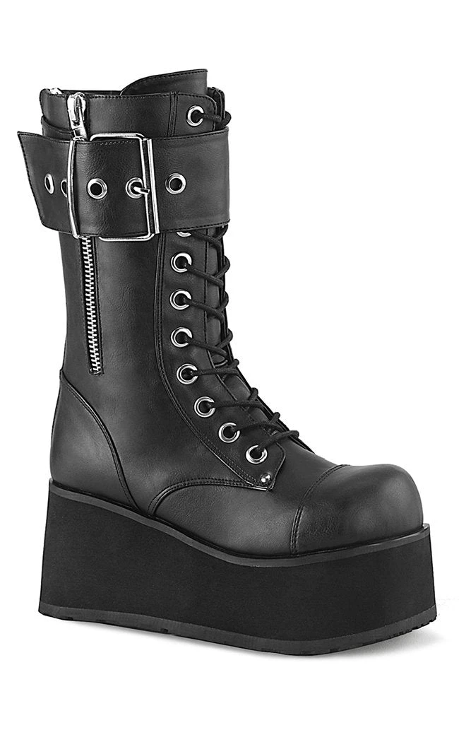 Badass black boots with oversized buckle strap and old-school punk attitude.