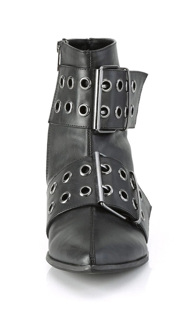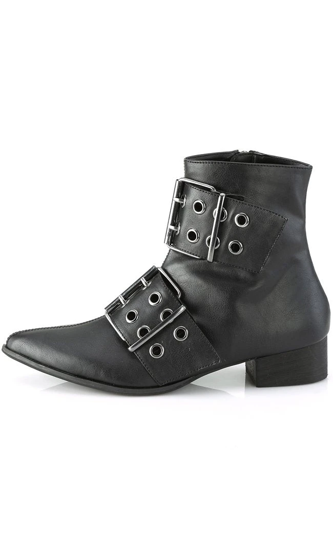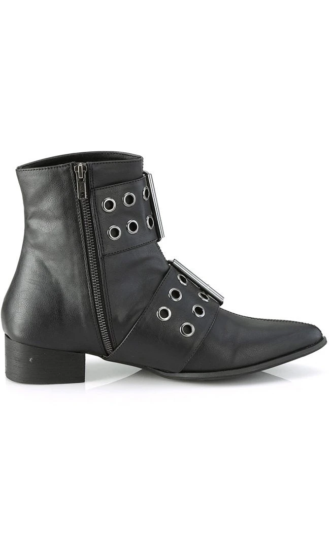 Put some magic in your step! The WARLOCK-55 boots are your classic winklepickers maxed out with two thick eyeleted straps. The boots close with a side zip for easy on/off.