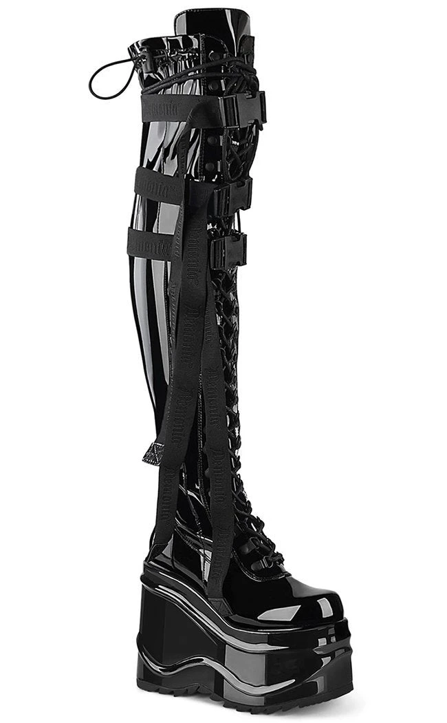 Strap in, you’re gonna need to at these heights! Stomp around on these crazy tall 6 inch wedges, with industrial look straps hanging at the sides for xxxtra club looks and festival getups.