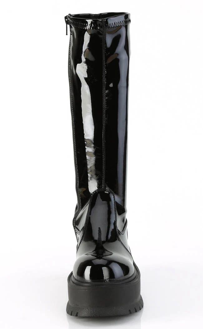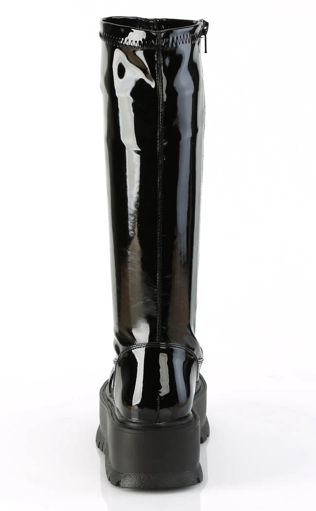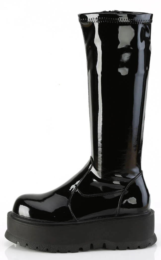 The SLACKER 200 boots are flatform knee-high boots with inside zip and bouncy sole.
