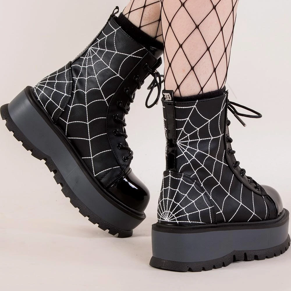 The SLACKER series from Demonia features an ultra-comfy platform sole and feisty punk rock flair.
