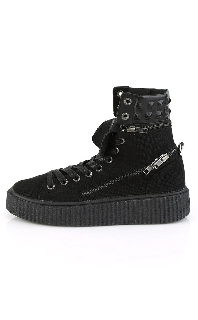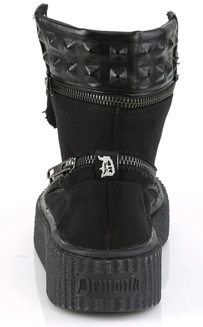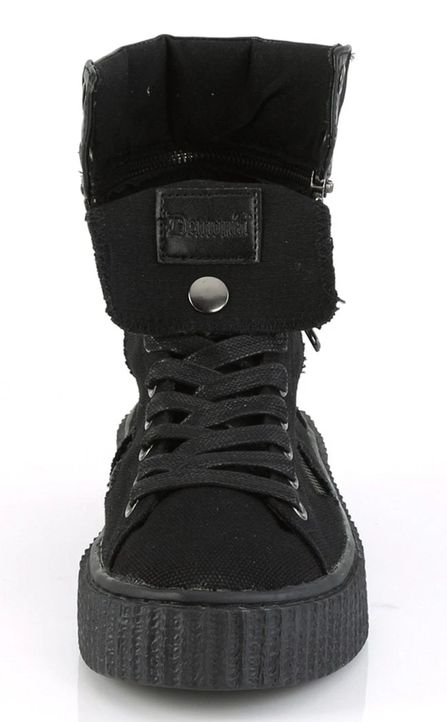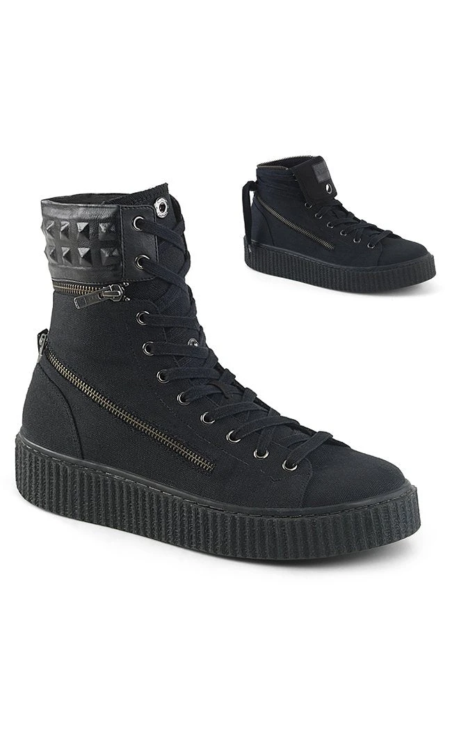 Half skate shoe, half wicked creeper. Demonia Sneekers are a comfy shoe with an edge.