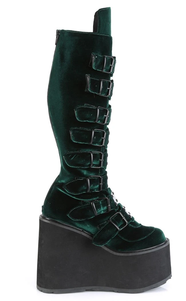 Swing your way into the club with this series of platform wedged boots and shoes, with buckles and straps and decals galore!
