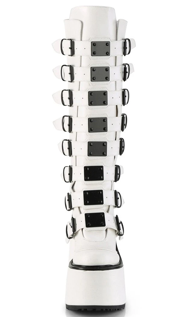 Swing your way into the club with this series of platform wedged boots and shoes, with buckles and straps and decals galore!