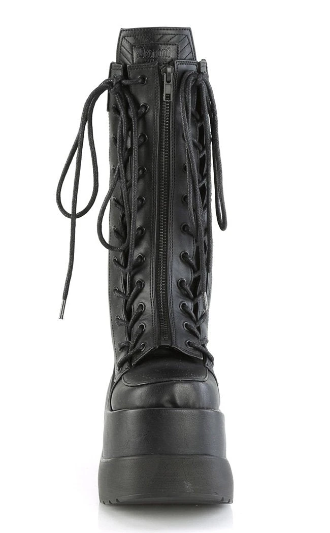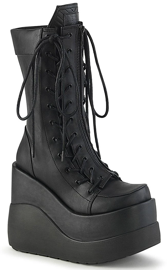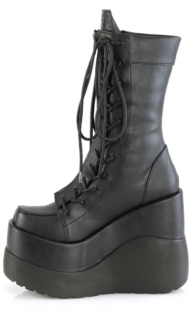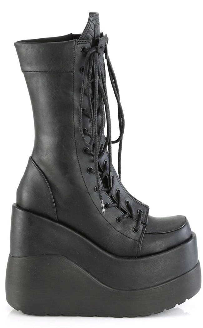 Enter the void! The VOID-118 boots feature a killer platform wedge, lacing up at the front over a coffin shaped tongue.Â