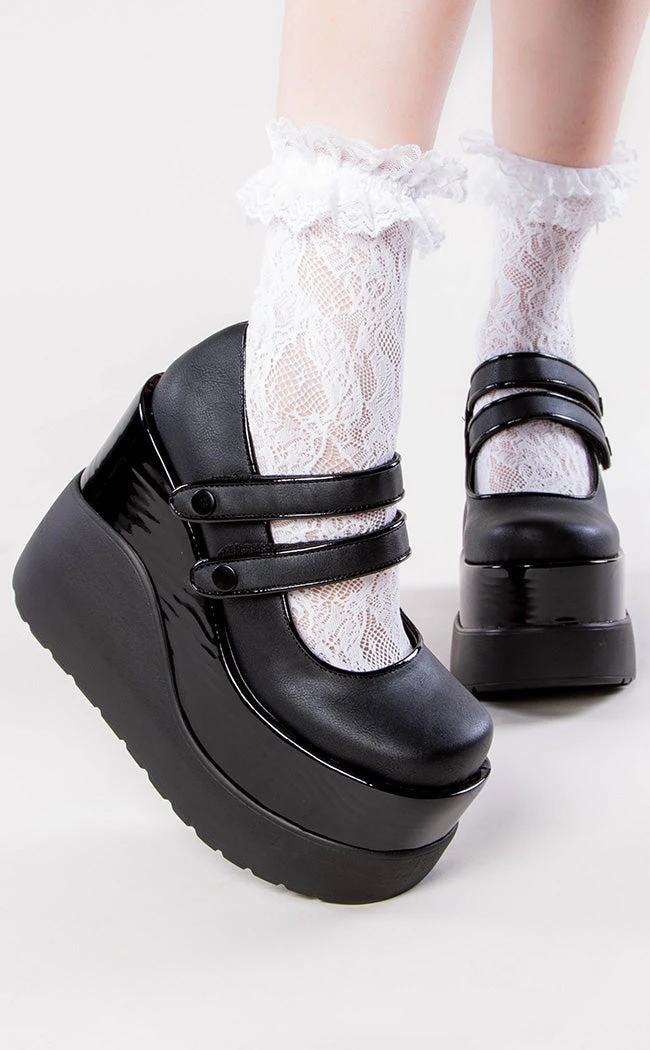 Enter the void! The VOID-37 Mary Janes feature a killer platform wedge, securing with two buttoned straps.Â