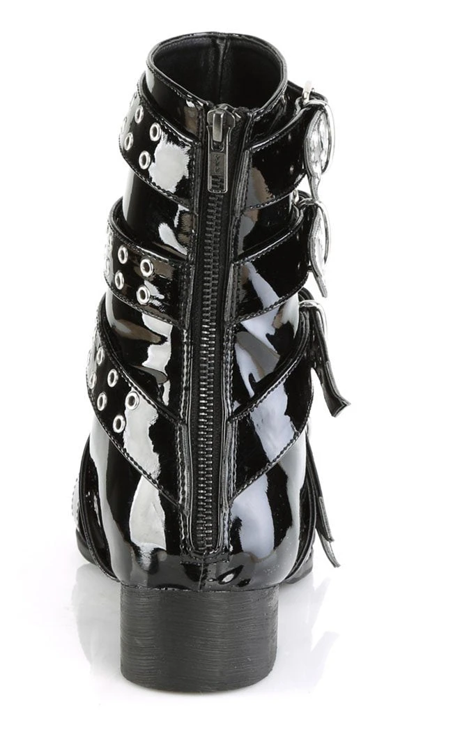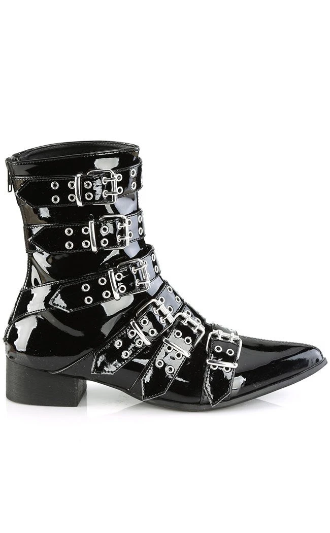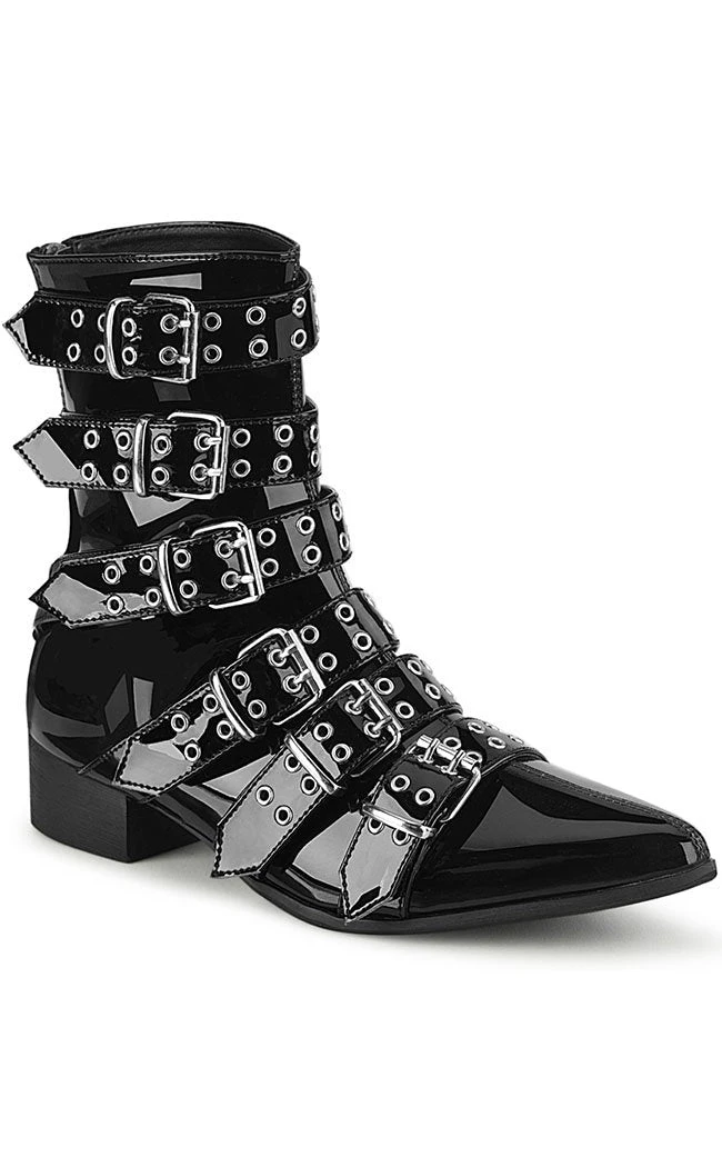 Put some magic in your step! The WARLOCK-70 boots are your classic winklepickers maxed out with 6 eyeleted straps. The boots close with a side zip for easy on/off.