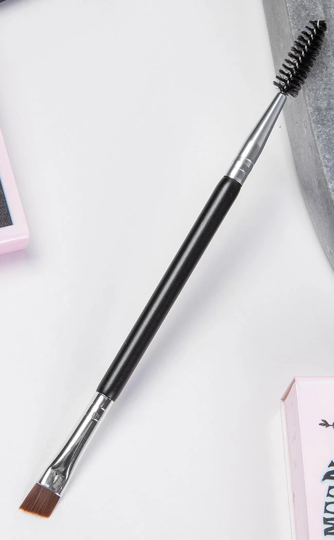 Finesse your brows in a snap with this all in one angled brush! One end has a spoolie to comb and shape your wild brows while the other holds a soft angled brush for carving out and filling them in.