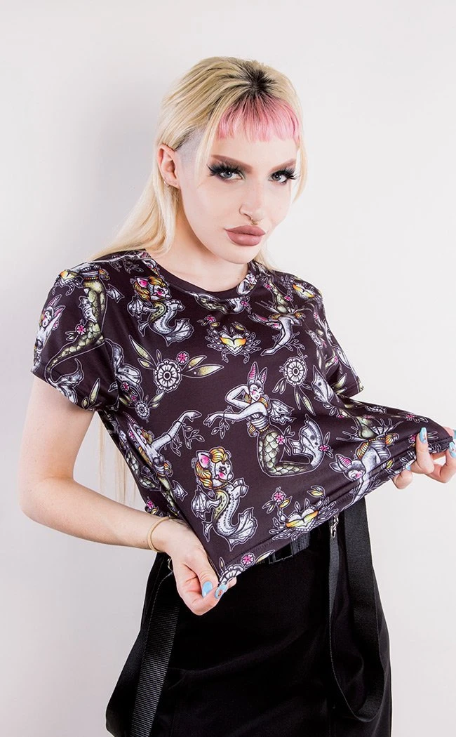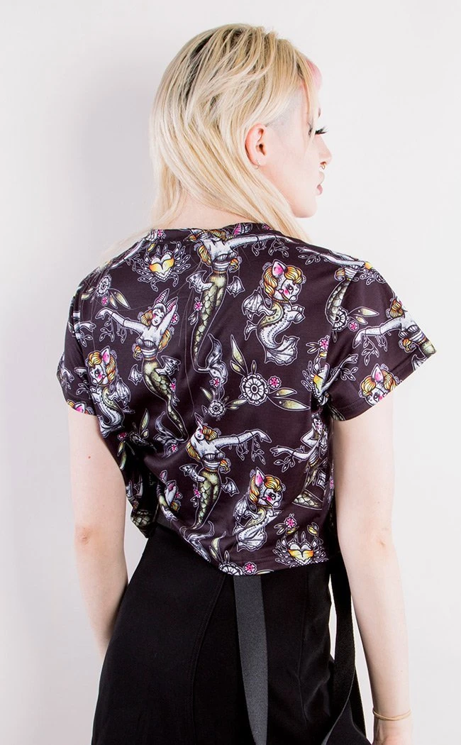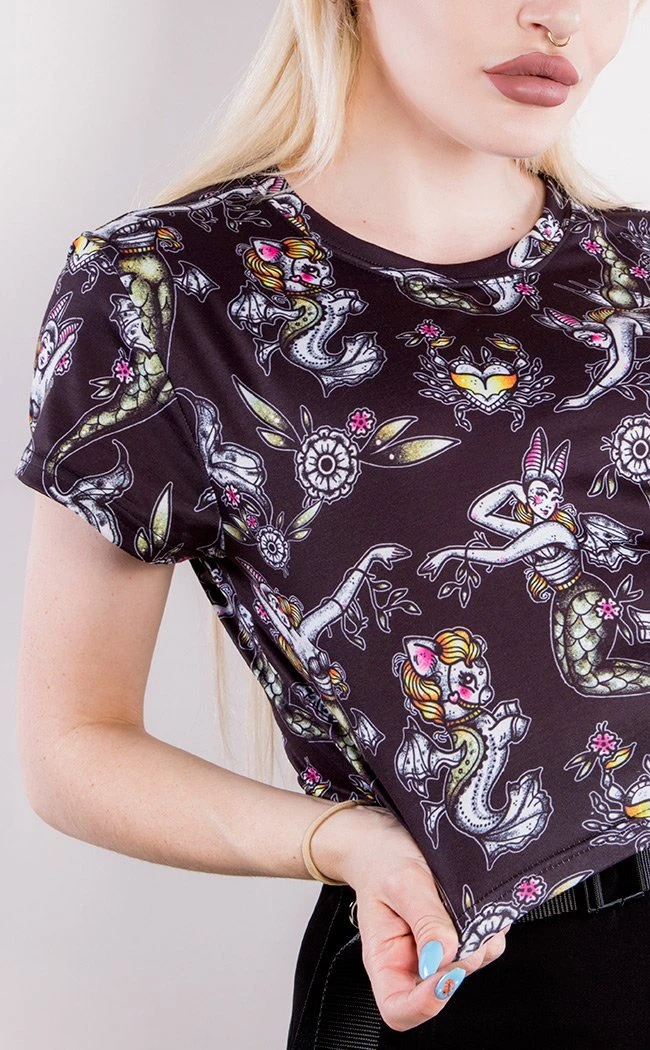 The crop is the perfect length to wear with high waisted shorts, skirts or even under pinnys!