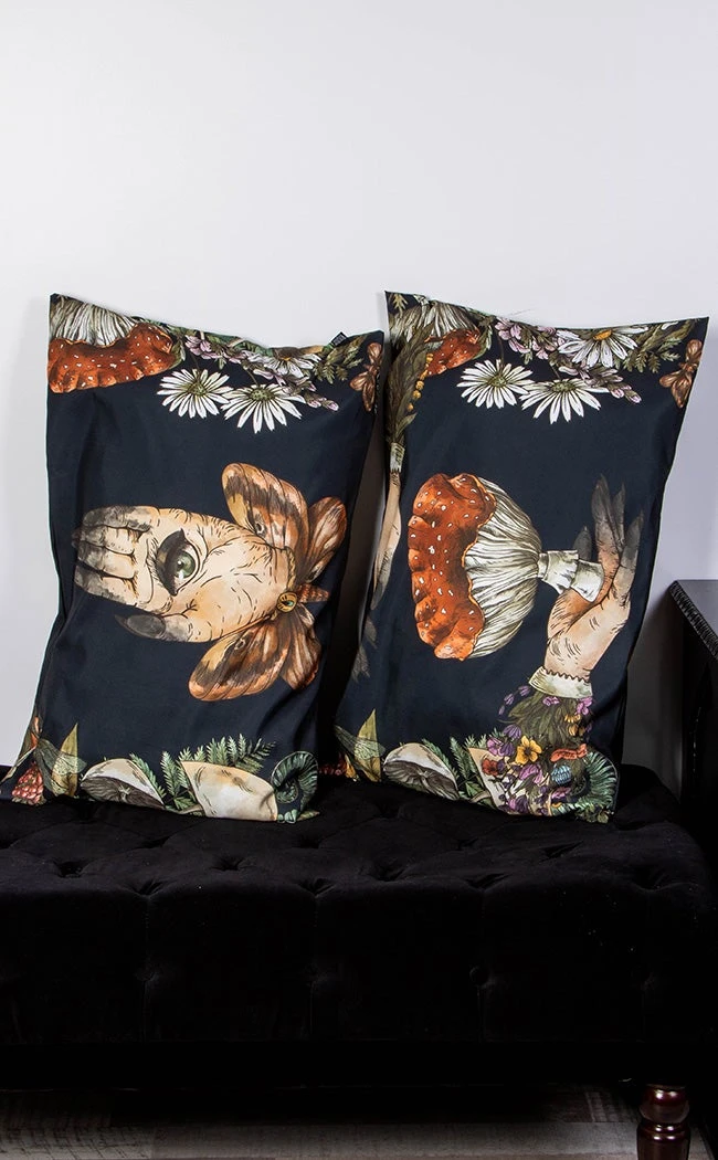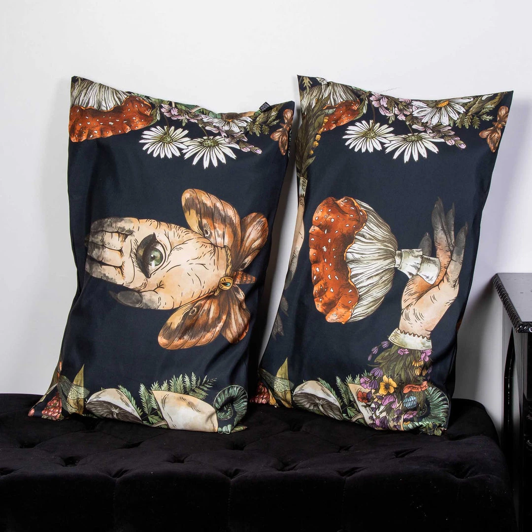 You know you will always have the cool side on these! Decorated with a different, magical print on each side, these pillowcases have great earth witchy vibes. Gives dark cottagecore energy.Â