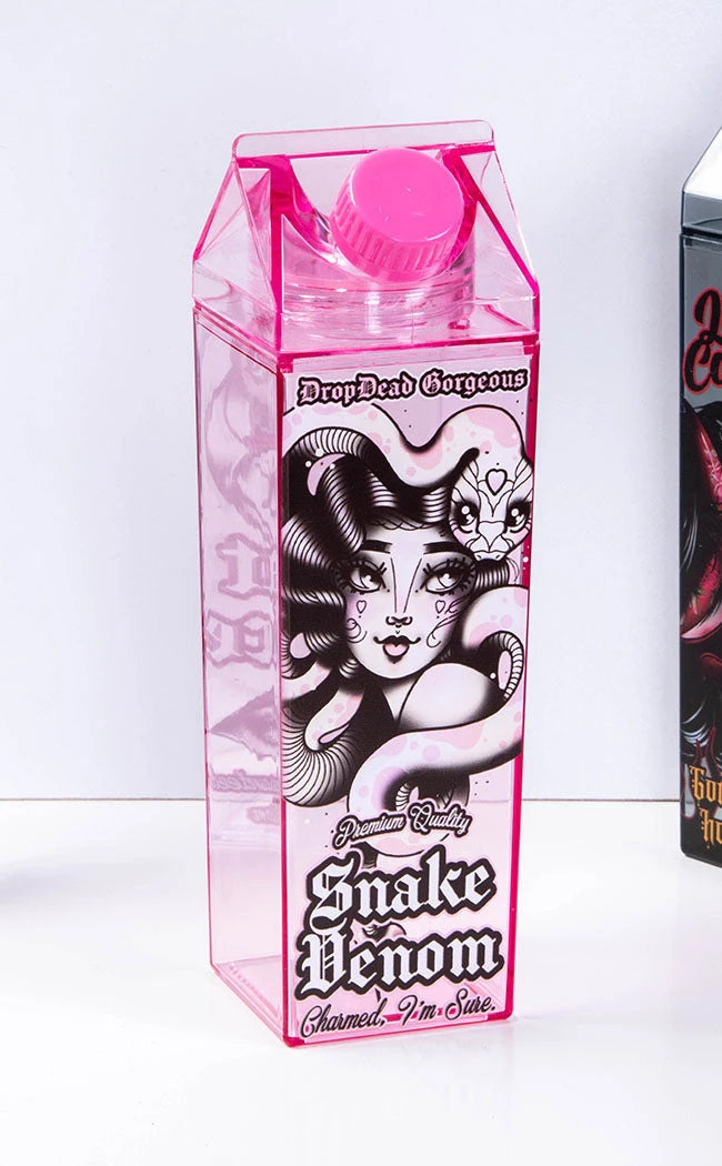This unique bottle is shaped like a milk carton and tinted pink, featuring cute artwork of Medusa charming her way into your heart. With a capacity of 420ml (nice), there’s plenty of room to take yer fave poison on the go.