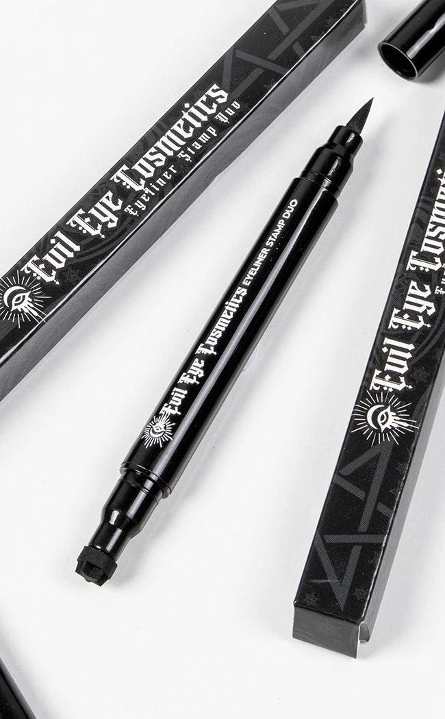 Create stunning looks in a snap with the Wicked Ink Eyeliner Stamp Duos! These pens are double-ended: one is a felt tip liner for fine details while the other end has an easy to use star-shaped stamp. Simply press it lightly to yer skin and go! With our signature Stiletto Sharp liner formula, you’ll have water and smudge-proof looks to last you through the day and night.
